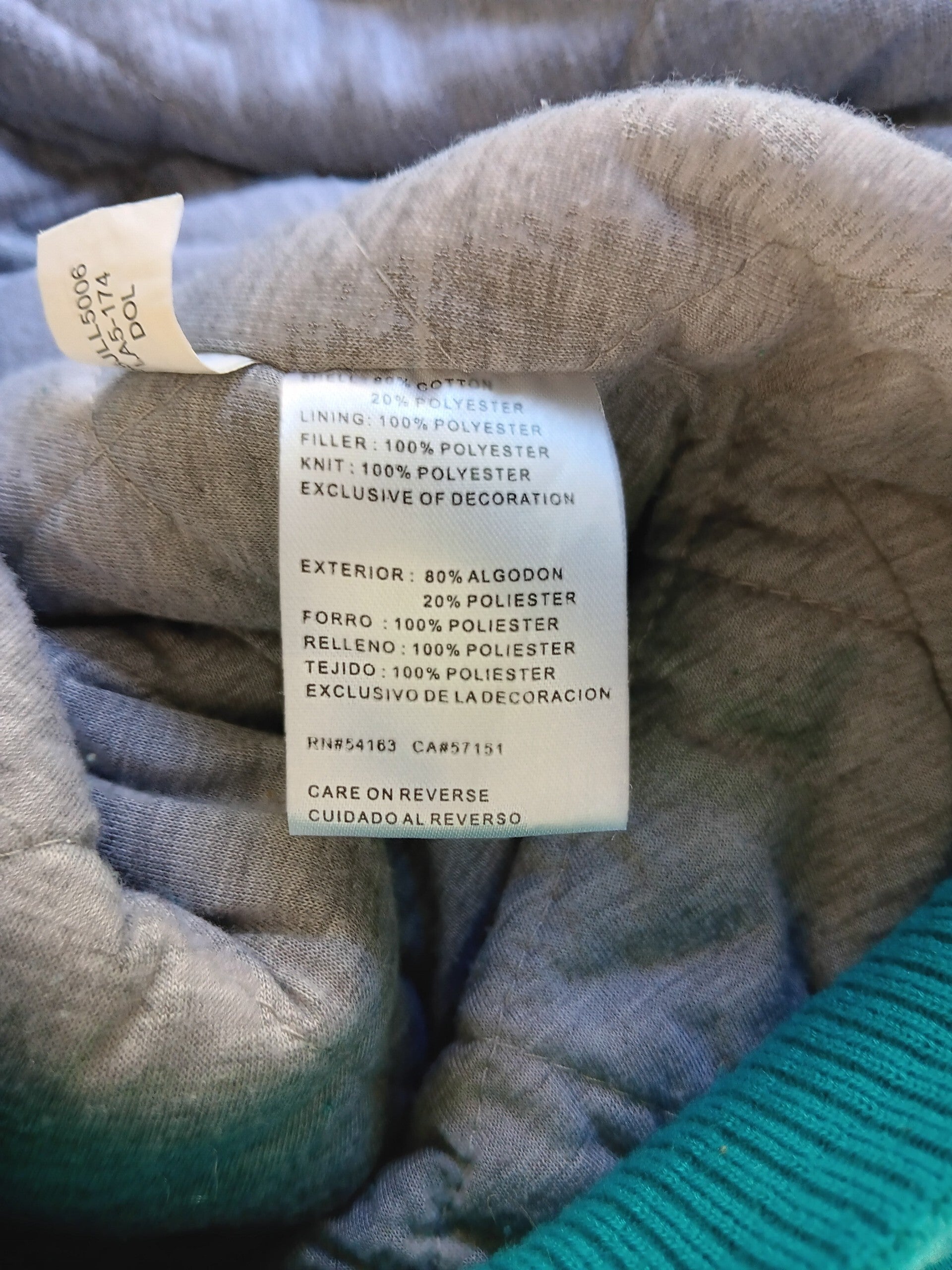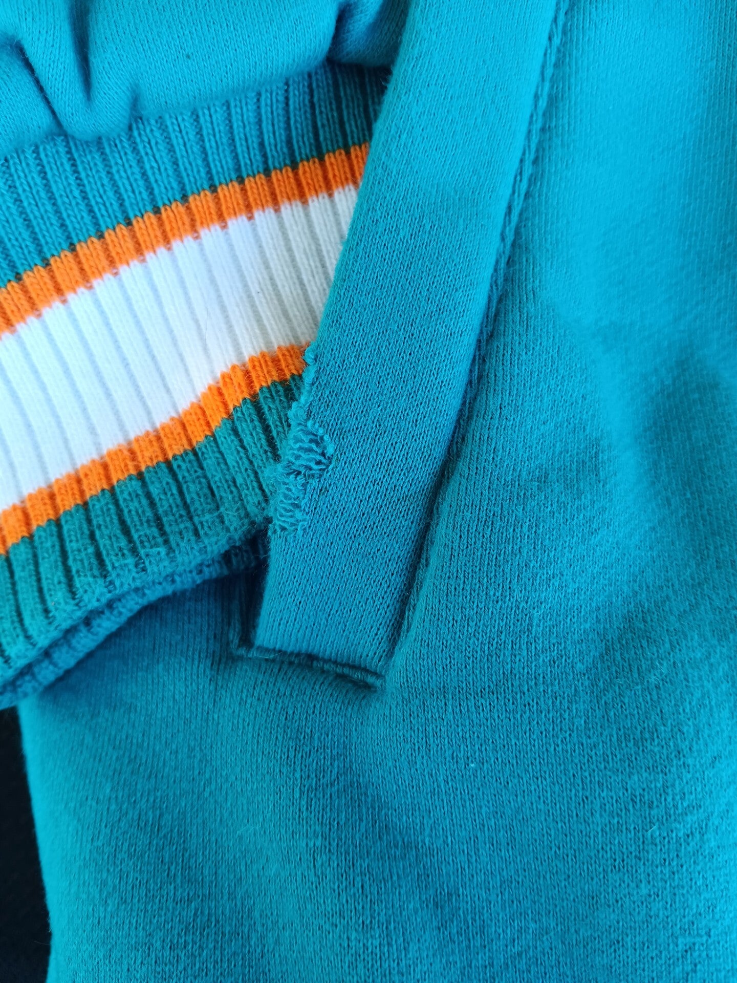 The logo used on the Jacket is from estimated 2013 to 2017. Jacket has a zipper front. Small Dolphin logo is on left front, left arm has '73 & '72, right arm has Superbowl VIII & Superbowl VII, back has large Logo with Superbowl Champions. All logos and wording are stitched/fabric. Two front pockets (right pocket has small amount of wear see picture) Inside breast pockets on both sides - left pocket has zipper. The entire jacket is lined. Machine Washable