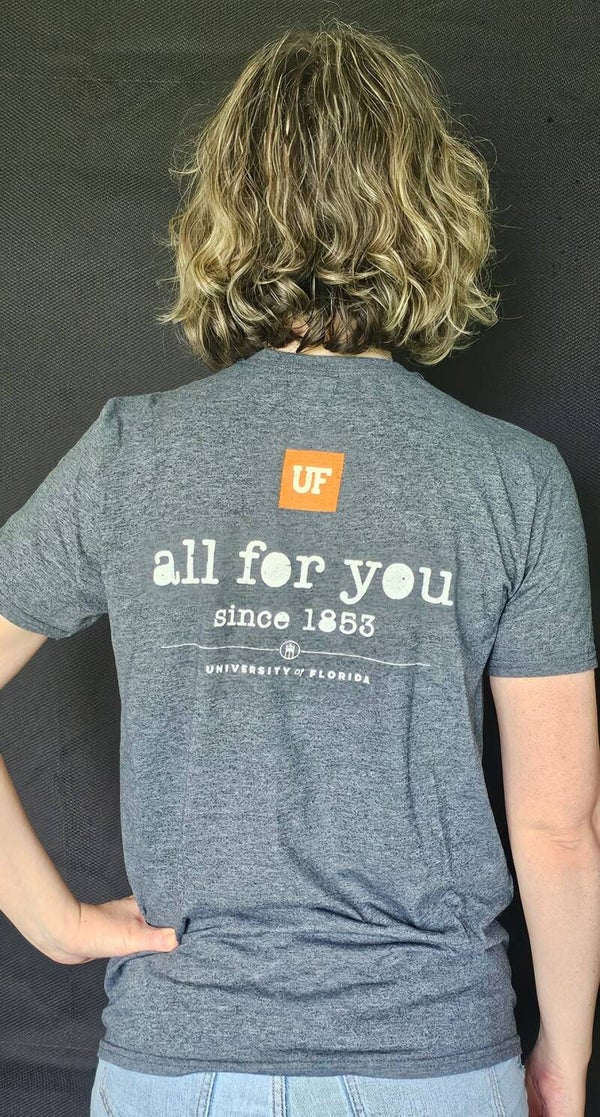 This University of Florida T-shirt feature Blue & orange graphic on front with University of Florida '03 Rocks. On the back in White is has "all for you since 1853 University of Florida.