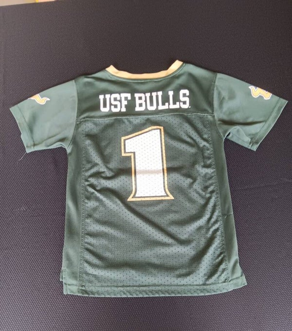 University of South Florida Youth Jersey is perfect to help your youngster support your team. Front has USF & #1, both arms have the Bulls logo and back has "USF Bulls" #1. All the above are graphics