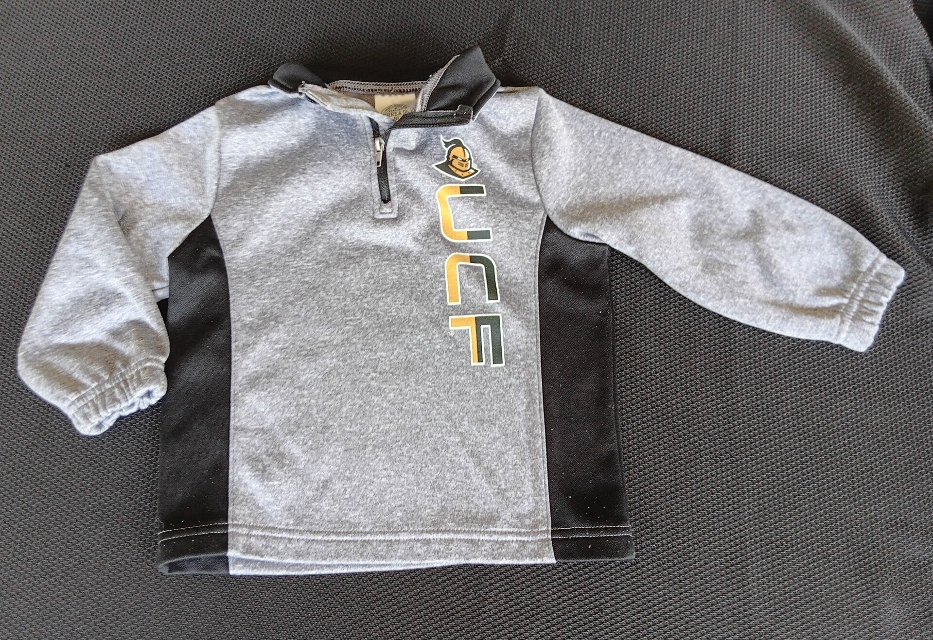 Your toddler can support your team with this gray & black stylish collared sweatshirt. The front feature a zipper neck with collar, the knights logo and UCF.